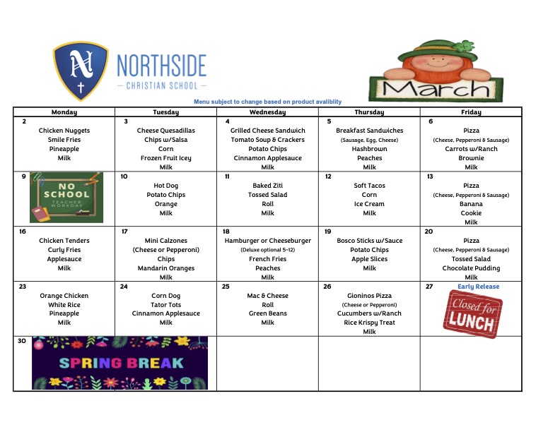 For questions, please contact Melody Peeler, Supervisor of Food Service, at mpeeler@ncslions.org.